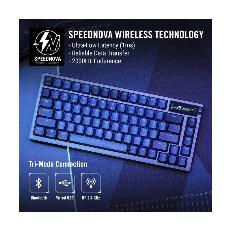 - Teclado Inalambrico Asus 80% (M701 Rog Azoth/Nxsw/Es) Gaming, Negro, Mecanico, Bluetooth, Switch Lineales Rog Nx Snow, Teclas Pbt, Pantalla Oled, Rgb