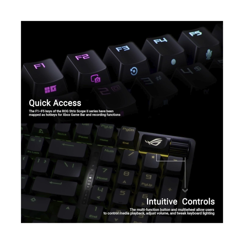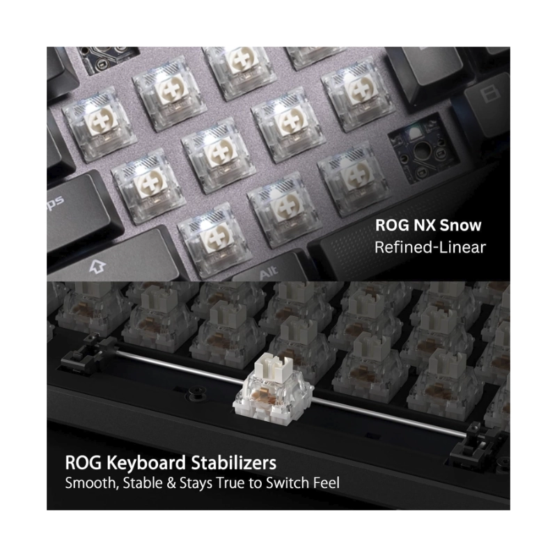 - Teclado Inalambrico Asus (X901 Strix Scope Ii 96 Wl/Nxsw/Es/Abs) Gaming, Negro, Mecanico, Bluetooth, Switch Lineales De Nieve Rog Nx, Trimodo, Led-Rgb