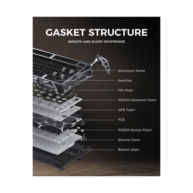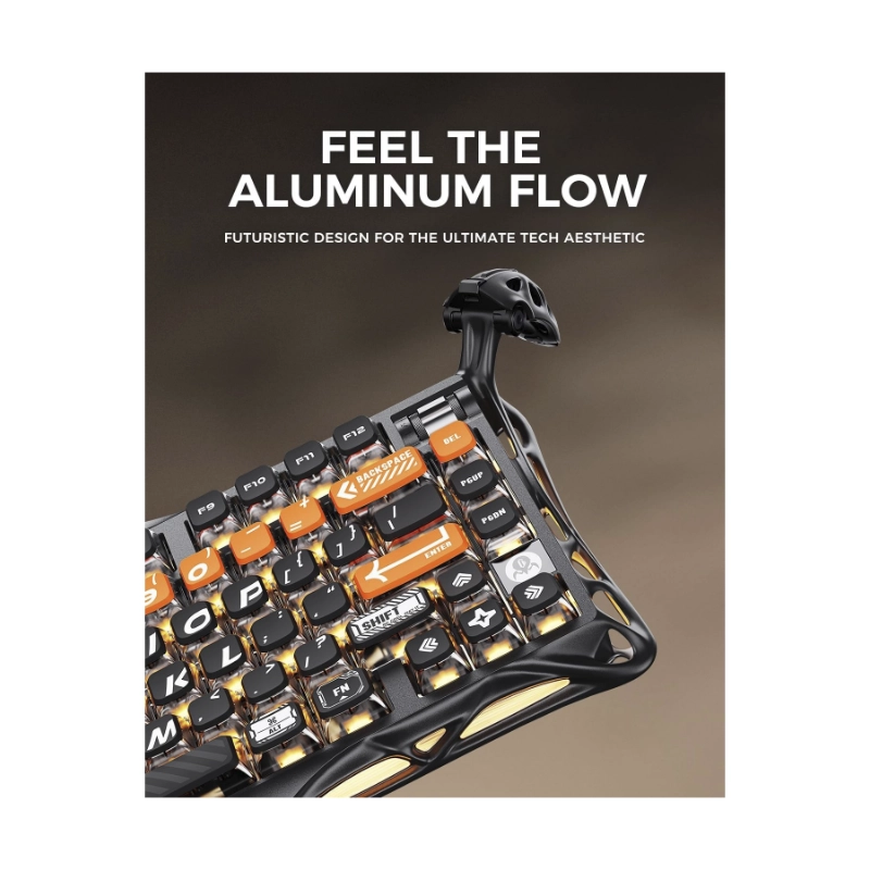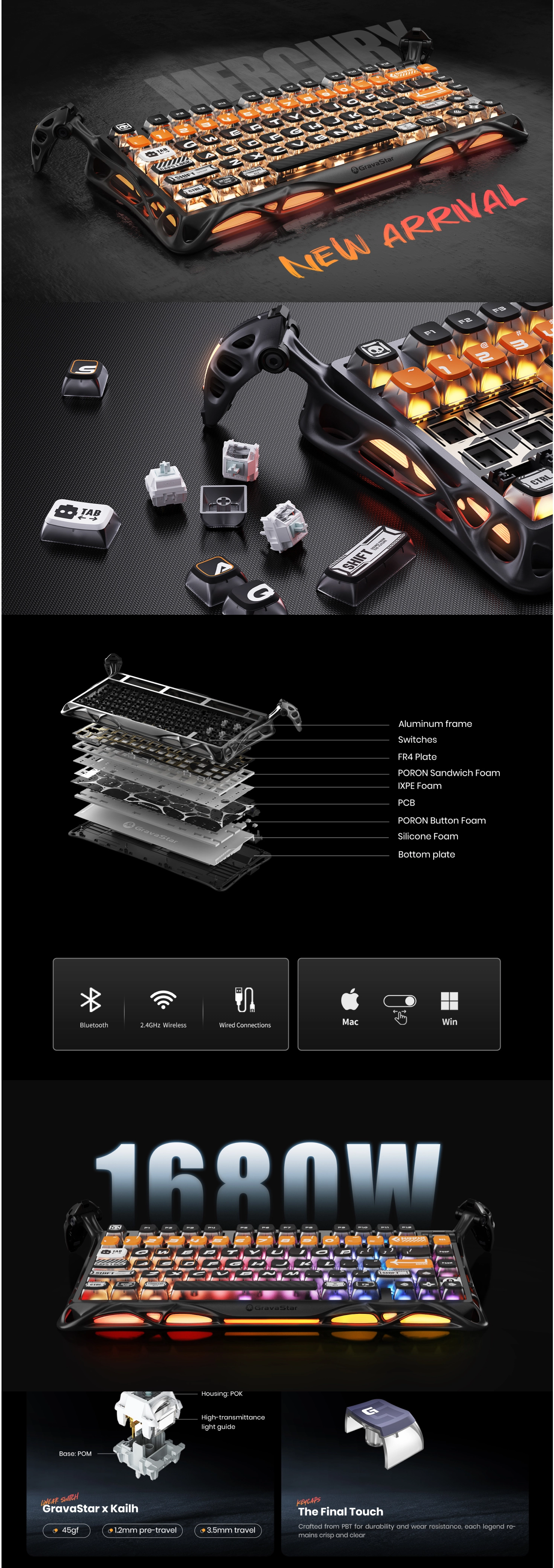Teclado Inalambrico Gravastar Mercury K1 Pro 75% (Gs K1 Pro_bo_blk) Negro Mate, Mecanico, Switch Lineales, Aleacion De Aluminio, Led-Rgb