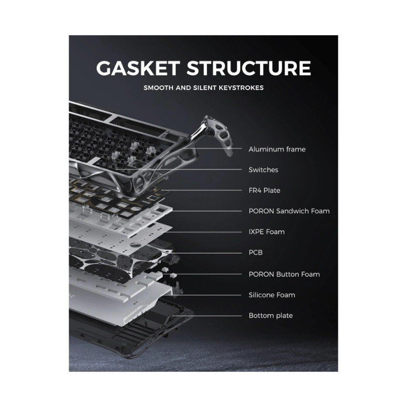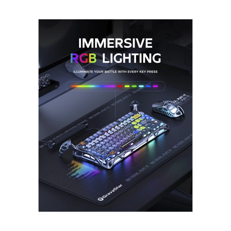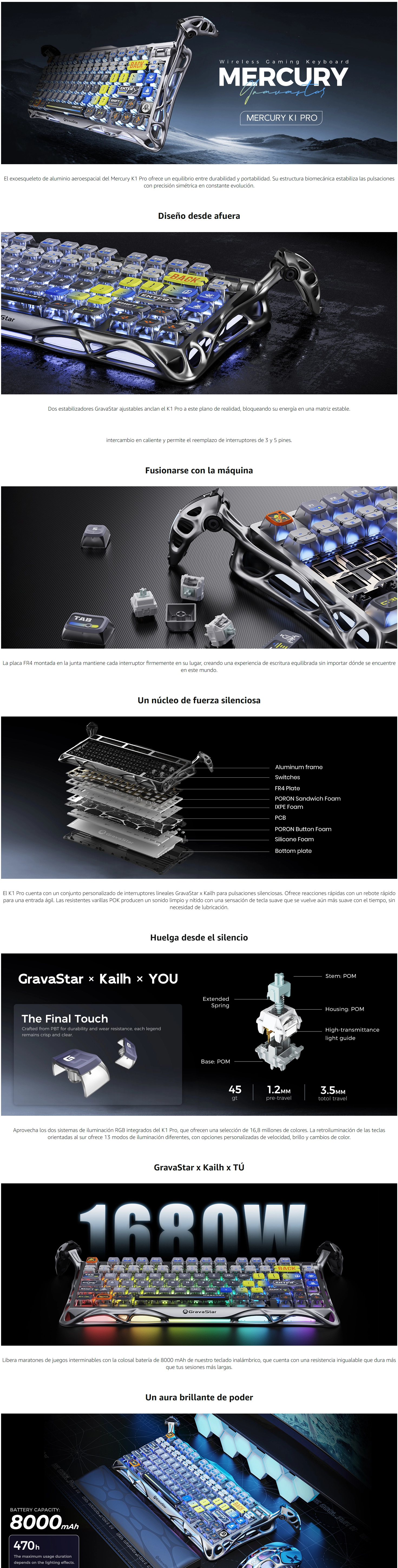 Teclado Inalambrico Gravastar Mercury K1 Pro 75% (Gs K1 Pro_s_cgry) Metal Cepillado, Mecanico, Switch Lineales, Aleacion De Aluminio, Led_rgb