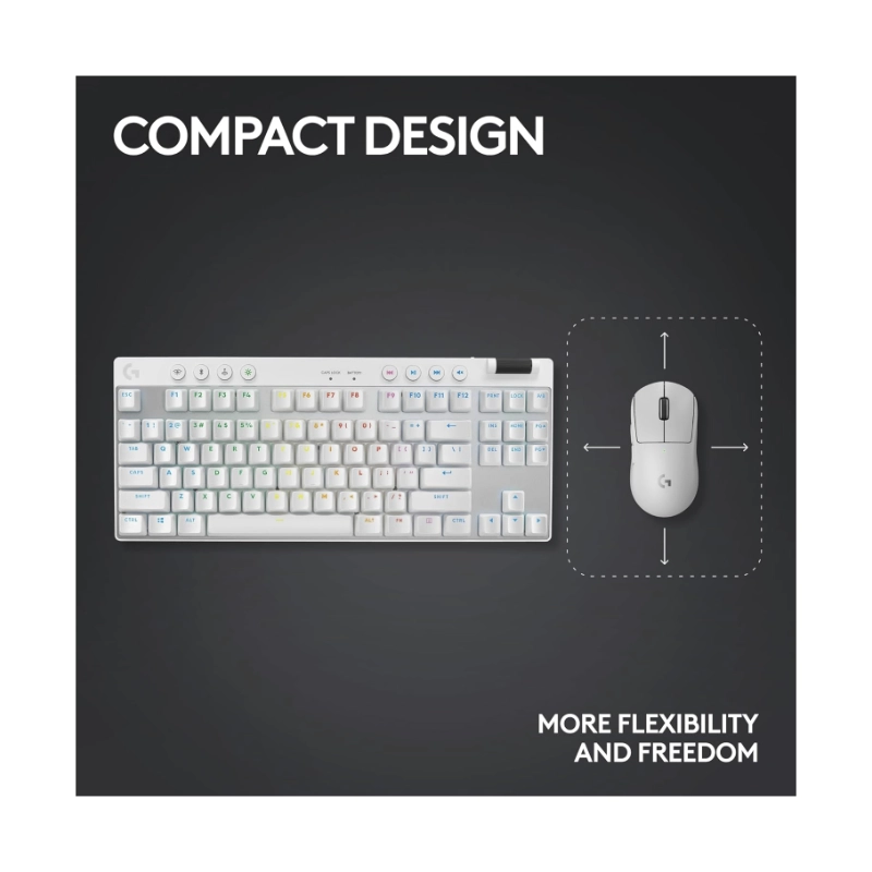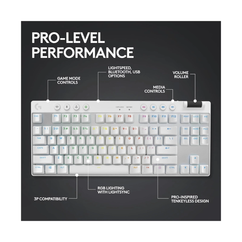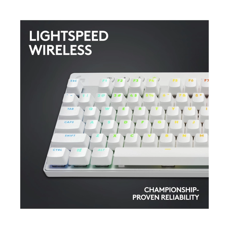 - Teclado Inalambrico Logitech G Pro X Tkl Lightspeed 80% (920-012143) Gaming, Blanco, Mecanico, Switch Marron, Bluetooth, Teclas Pbt, Led-Rgb