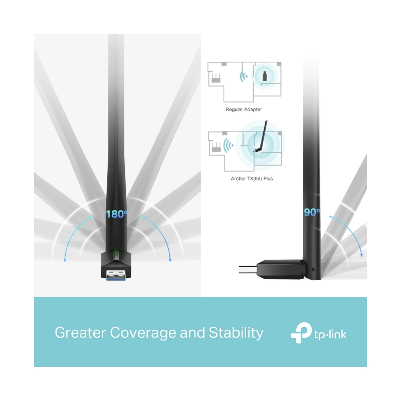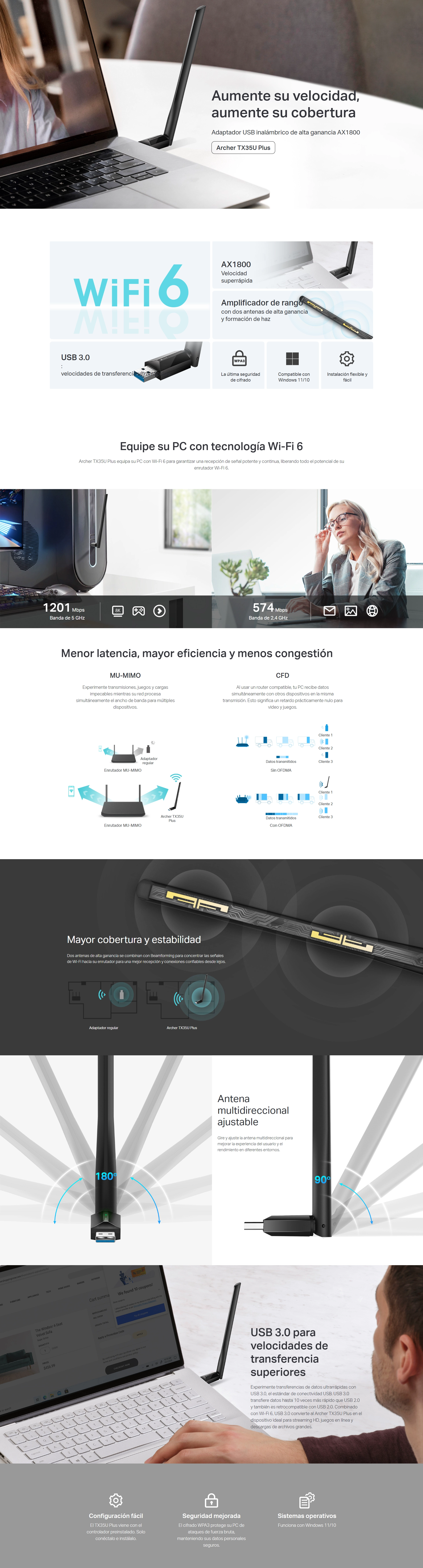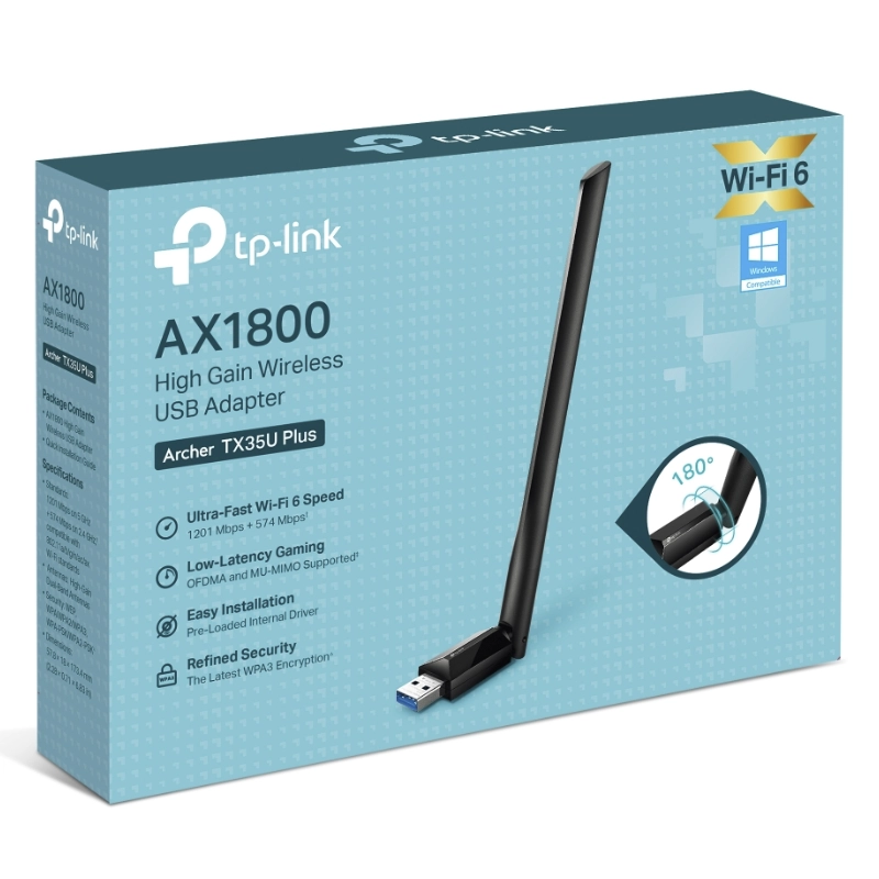 - Usb Inalambrico Tp-Link Ax1800 (Archer Tx35U Plus) 2.4Ghz/574Mbps, 5Ghz/1201Mbps, Antena X1, Mu-Mimo, Cifrado Wpa3