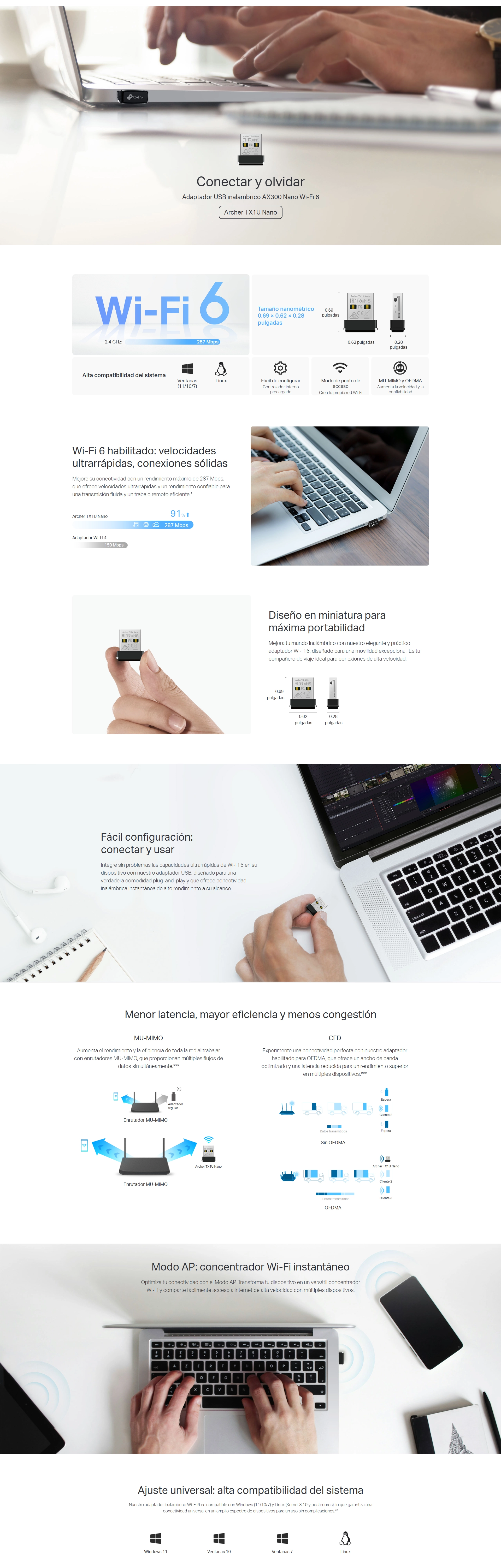 - Usb Inalambrico Tp-Link Ax300 (Archer Tx1U Nano) Wifi 6, Nano, Banda 2,4 Ghz, Hasta 287 Mbps