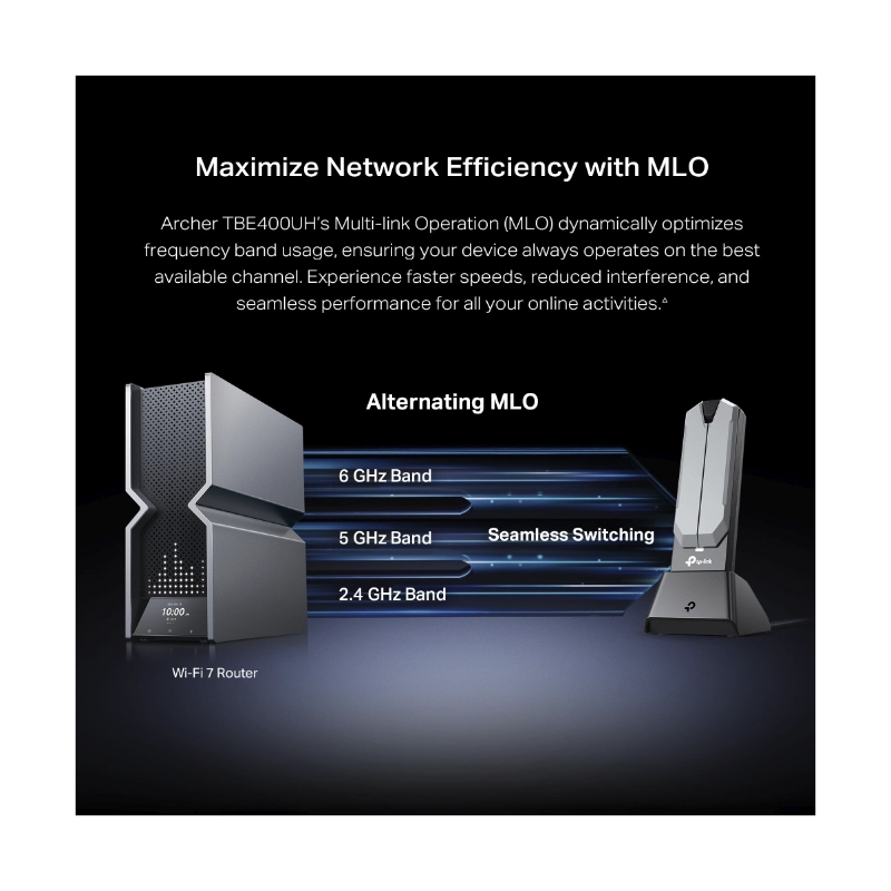 El adaptador Wi-Fi 7 Archer TBE400UH está diseñado para ofrecer una gran mejora en la cobertura, velocidad y capacidad total.