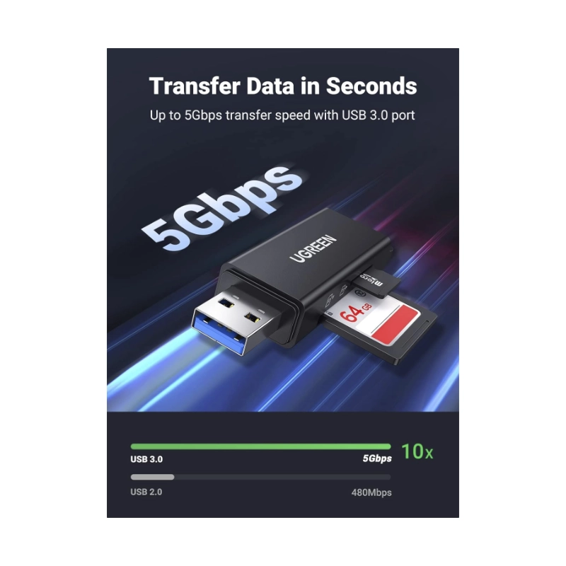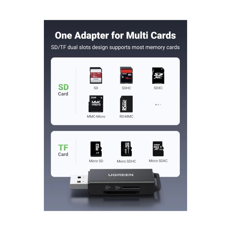 - Lector De Memorias Sd Ugreen (6957303847525) X1 Sd Slot, X1 Tf Card, Usb 3.0